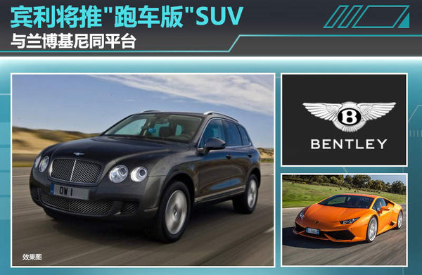 超豪华品牌宾利2014年全球总销量为11,020辆,这是继2013年宾利品牌创立95年来全球年销量首次破万后,再创新高的一年。鉴于时下全球SUV市场持续火热,宾利已敲定了首款大型SUV在年内上市,同时其也将进一步拓宽SUV产品线,为衍生更多元化的产品打下基础。日前网通社从美国媒体autocar获悉,由于宾利首款SUV订单已超过2020年全球销量3,000辆的预期,为了保持销量持续增长以及迎合消费者对于不同风格SUV车型的需求,宾利已规划推出旗下第二款SUV。新车定位为“跑车版”跨界SUV,将与兰博基尼共同出自大众集团的MSB平台。
