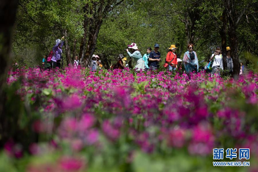 5月24日,游客在四川省汉源县桌子山上观赏报春花。 近日,位于四川省汉源县宜东镇桌子山上的报春花遍地绽放,引来游人观赏拍照。 据植物专家调查发现,这里的报春花属于原生群落,集中生长的面积约20多平方公里,是罕见的大面积花海。野生报春花喜长在海拔2000-2500米的湿润多腐殖质山坡洼地、溪边和湖畔。 新华社记者 江宏景 摄