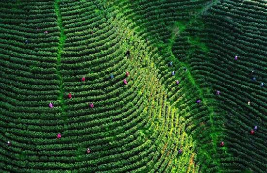 清明时节几场不大不小的春雨,把丹寨这座西南深山里的小城洗刷得清爽洁净。从东湖边的丹寨万达小镇前往扶贫茶园的盘山路上,转过几个弯,绿油油的茶山已在眼前。和杭州狮峰不同,马寨村的这块茶园地势很高,平均海拔过千米。清晨时分雨雾氤氲,空气中满是自然的清香,采茶人已开始忙碌,她们身着靛蓝的苗族传统服饰,熟练地采撷着茶树尖的那两叶一芽。低海拔、高海拔、多云雾、寡光照,这是通过欧盟285项苛刻检测的无污染扶贫特产“丹绿、丹红”茶叶的原材料——常人一天采不了几百片,丹寨茶农的日常是3万片,想挑战吗?