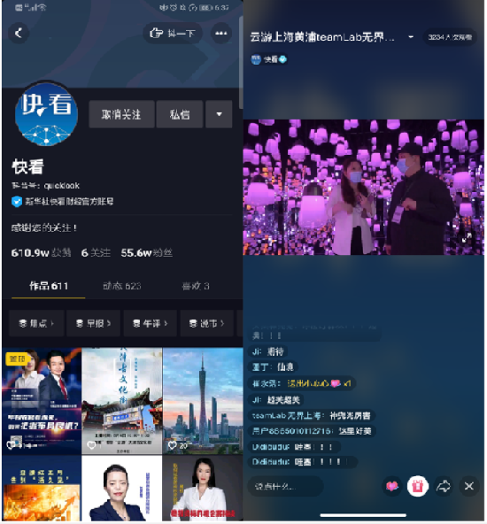 “快看”在今年3月强劲登陆抖音、快手、头条、微博等平台。上线两个月,便成功举办“市长带你看湖北”“中国文旅再出发”“周日直播间”“交易进行时”等直播活动,粉丝数迅速增长至近60W,“1000 万+”作品频现。