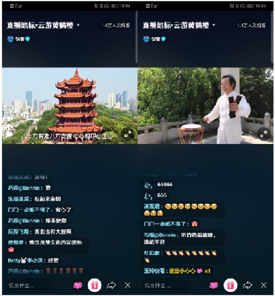 据初步统计,“云游黄鹤楼”直播在新华社“快看”抖音号和快手号观看量超过79万人次,其中快手号点赞数超过20W。黄鹤楼是新华社“快看”“五一”期间推出的“云游文旅、直播地标”系列活动的第5站,此前北京前门、上海外滩、广州广州塔、顺德美食直播活动均人气爆棚。最后一站在甘肃嘉峪关关城,“云游”如意甘肃,领略不一样的风情,快手“快看”观众10W+,获点赞12.3W,抖音“快手”观众数十万。